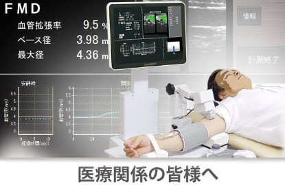 健康診断では、血圧やコレステロール、血糖値などを測定し、将来の心筋梗塞や脳梗塞のリスクを推定しています。ただしそれら古典的な動脈硬化リスク因子の管理だけでは不十分だと言われています。弊社は動脈硬化のファーストステップである血管内皮機能を測定するFMD検査装置を世界で唯一、製造、販売しています。